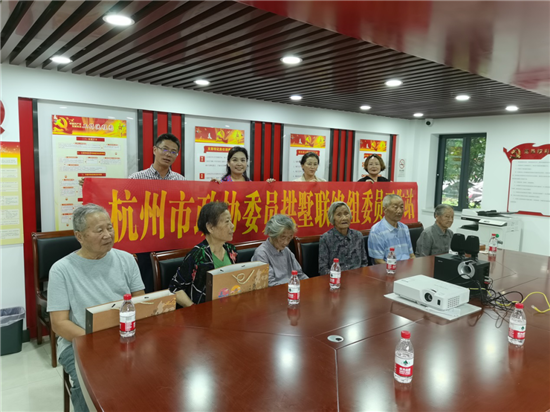 在隽逸花苑小区党群服务站,委员们亲切地与老人们拉起家常,并仔细询问他们目前的身体情况、生活状况及存在的困难等。隽逸花苑小区有五幢楼是皋亭征地群众回迁房,委员们对在座的老人们支持城市建设表示敬佩,并叮嘱他们要保重身体,享受美好的晚年生活。