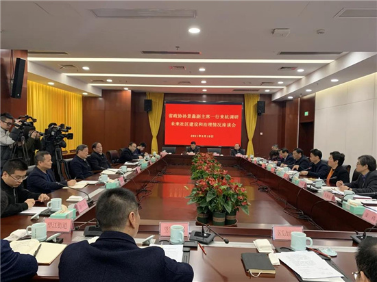 3月10日上午,省政协党组副书记、副主席孙景淼率调研组来杭就“未来社区建设和治理情况”开展调研。冯仁强参加。