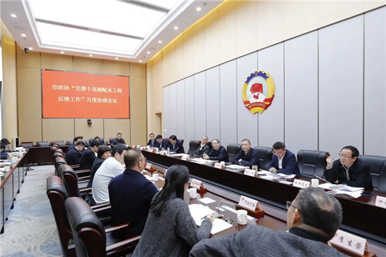 3月26日上午,市政协围绕“完善千岛湖配水工程后续工作”召开月度协商座谈会。市政协主席潘家玮讲话。缪承潮到会听取意见并与委员专家互动交流。张仲灿主持。