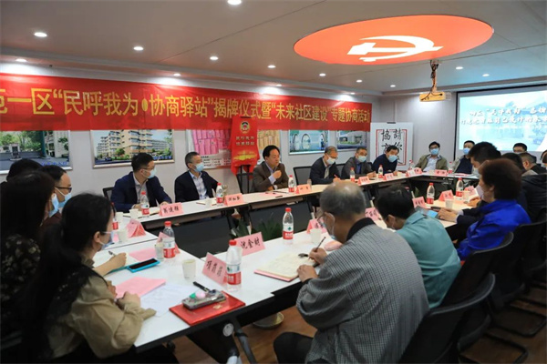 揭牌活动现场,区政协委员与居民代表在“民呼我为•协商驿站”里开展了以“未来社区建设,我们准备好了吗?”为主题的首场协商活动,围绕传承红色根脉、践行民呼我为理念、注重数字赋能等内容开展协商。