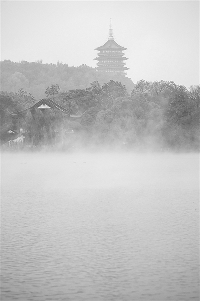 昨天下午,雪中西湖,雾气飘飘。 记者 陈中秋 摄