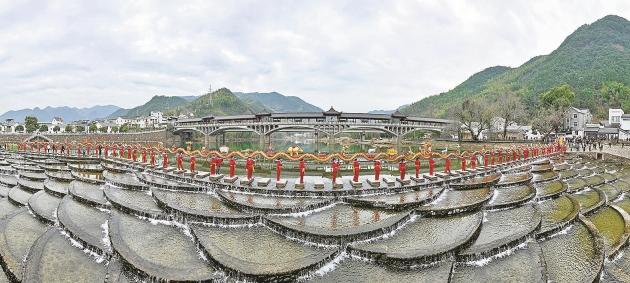 杭州日报讯 2月1日,农历正月十一,在富阳区湖源乡壶源溪的龙鳞坝上,巡游到此的窈口村女子板龙随着梅花锣鼓的节奏,沿着碇步桥踏溪而过,在青山绿水间上演“蛟龙过溪”的壮观场景,并由此开启湖源乡“送福富春年 癸卯闹元宵”系列活动的大幕,将新春喜乐的气氛再次推向高潮。
