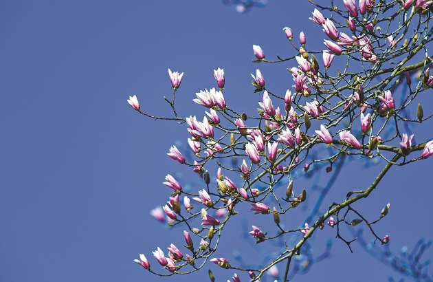 玉兰家族中,花开时间各有不同,其中较早的是天目玉兰,每年2月底就会慢慢绽放,似乎在告诉人们:看,春来了。