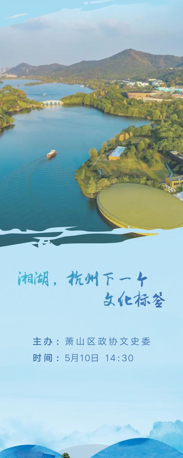 湘湖,是杭州西湖的“姊妹湖”。“湖、城、人、产”正在这里高度融合,历史文化与科学创新正在这里碰撞发展,“湘湖,杭州下一个文化标签”主题分享会,邀您一起聆听湘湖的前世、今生和未来。