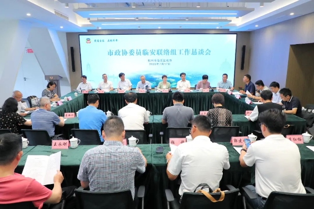 17日上午,市政协委员临安联络组工作恳谈会在杭州市政协新时代协商民主实践中心召开。市政协副主席陈新华,市政协文史委主任王利民、委员工委主任卢晓,区政协主席李赛文,副主席冯镭、张敏,秘书长李红樱,市政协委员临安联络组成员参加。