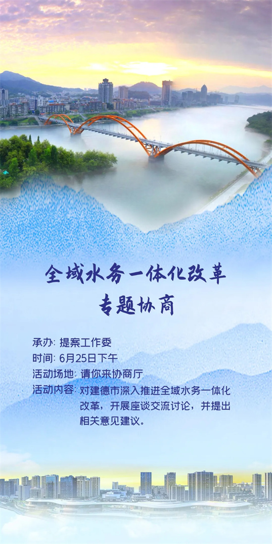 对建德市深入推进全域水务一体化改革,开展座谈交流讨论,并提出相关意见。