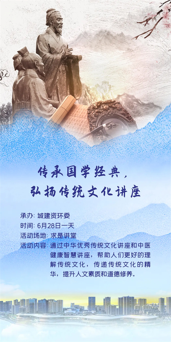 通过中华优秀传统文化讲座和中医健康智慧讲座,帮助人们更好的理解传统文化,传递传统文化的精华,提升人文素质和道德修养。