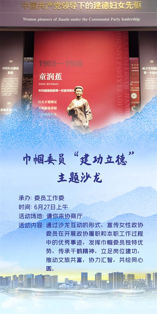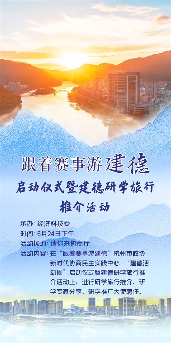 为全面展示建德政协亮点工作及协商民主成果,结合开展的“群众出题、委员解题”等具有各地特色的履职活动,以人民政协成立75周年为契机,在后亚运时代持续打响“宜居建德”城市品牌、“17℃建德新安江”旅游品牌,奋力打造“幸福宜居文旅共富”新图景,6月24日至28日,建德市政协将在杭州市政协新时代协商民主实践中心开展“跟着赛事游建德”主题活动周。
