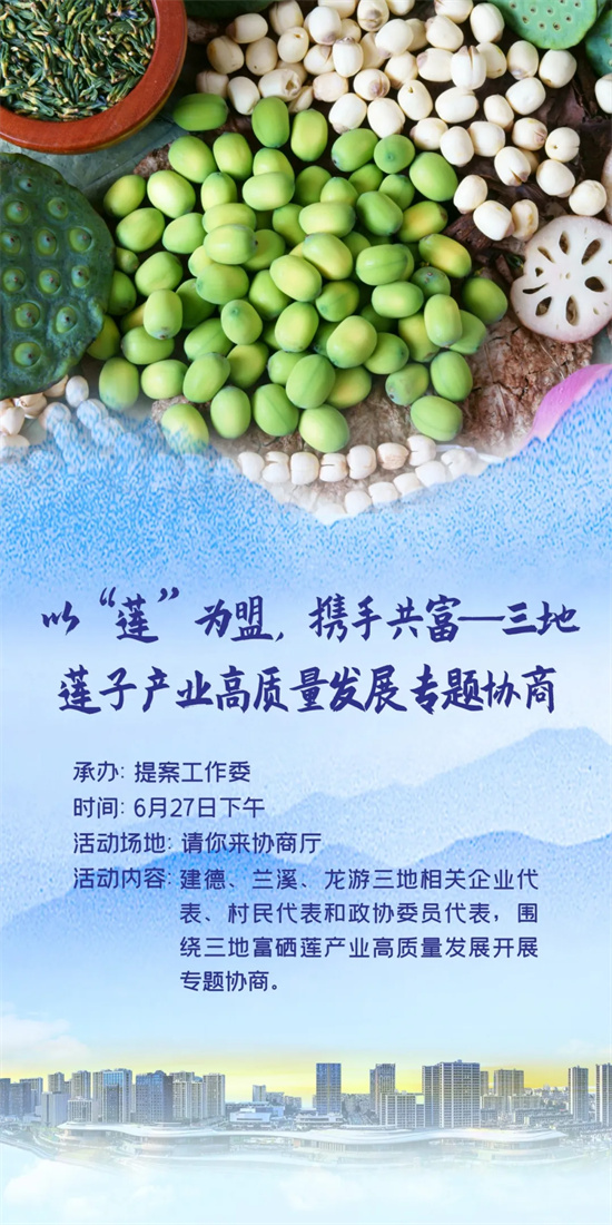建德、兰溪、龙游三地相关企业代表、村民代表和政协委员代表,围绕三地富硒莲子产业高质量发展开展专题协商。