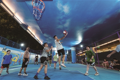 除了健身房,许多市民也会选择去“家门口”的口袋公园健身、活动。“这里离我家很近,孩子平时缺乏体育锻炼,现在放暑假了,晚上我都会带孩子出来运动,让他出出汗,健康一点。”在浙大御跸未来社区陪孩子一起锻炼的张女士说。