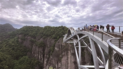 电梯一次可乘坐20人,只需要45秒,就可以将人送达128米高的悬崖之上。