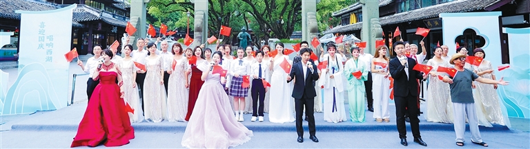 昨天下午,作为西湖风景名胜区党群服务中心“党群服务+文化传承”的创新实践,一场以“盛世华音·喜迎国庆·唱响西湖”为主题的音乐快闪活动在西湖岳湖广场上演。开场节目《湖鼓韵影》以气势如虹的鼓点拉开帷幕,浙江音乐学院音乐教育学院师生深情献上《灯火里的中国》……活动结尾的《我和我的祖国》引发现场观众大合唱。