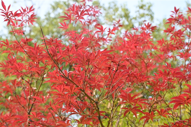 漫步山野,鸡爪槭的叶子已渐渐变红,像是被秋意点燃的火焰,在枝头跳跃闪烁;