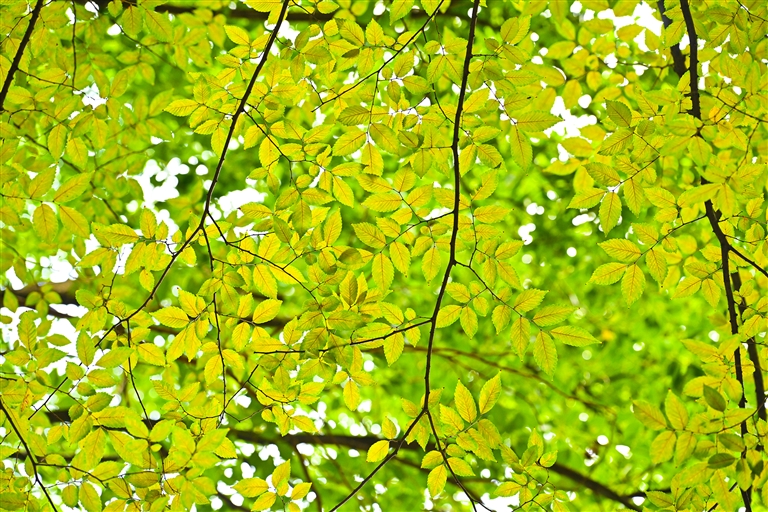 榉树叶正经历着一场华丽的变身,由绿渐黄,似是被大自然用画笔轻轻勾勒,晕染出层次丰富的色彩;