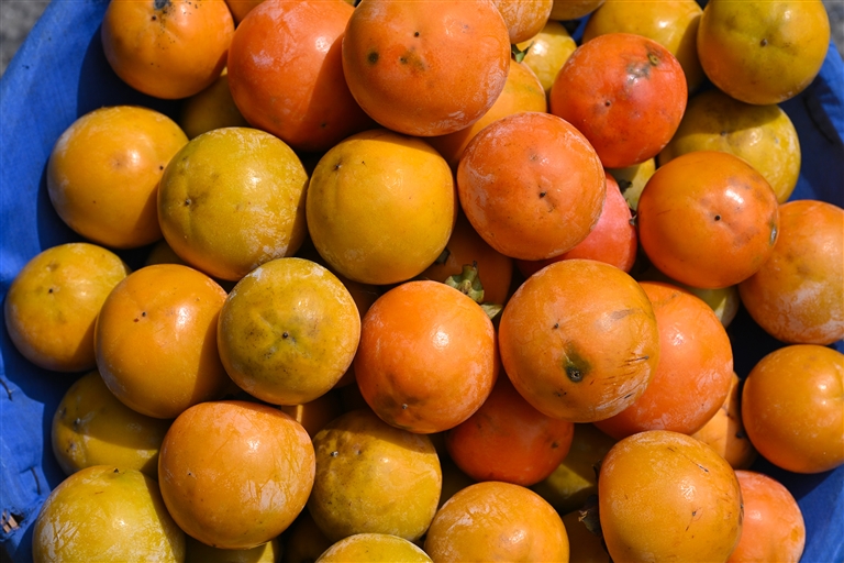 果园里,柿子迎来了丰收季,橙红的果实沉甸甸地挂满枝头,宛如一盏盏小灯笼,散发着诱人的光泽,引得人们纷纷前来采摘,共享这份甜蜜与喜悦。