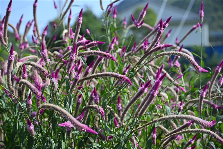 地面上的阔叶麦冬开出一串串紫色的花,星星点点散落于草丛间,如灵动的眼眸。