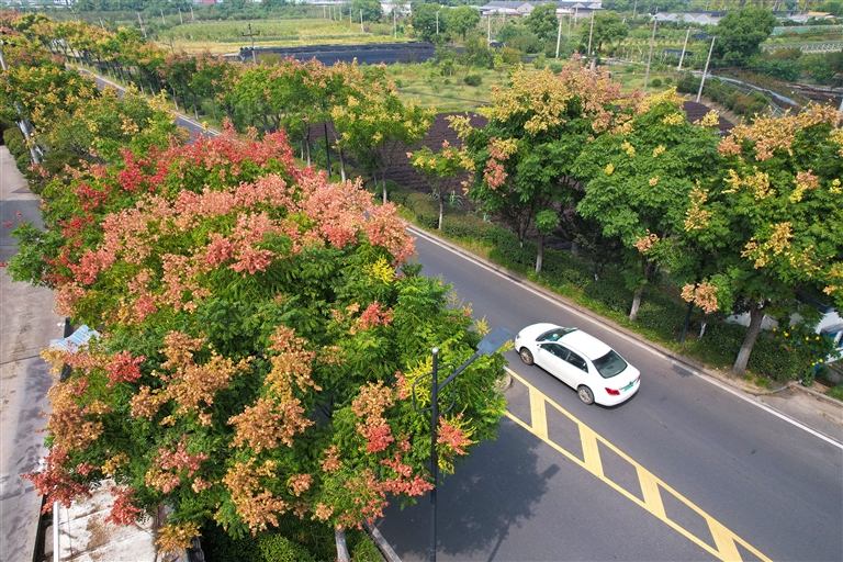 黄山栾树也不甘示弱,红的、黄的的果实挂满枝头,宛如一串串小巧的风铃,在微风中轻轻摇曳;
