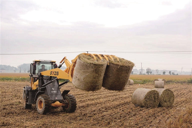 夹草机搬运“稻田卷” 记者 陈林森 摄