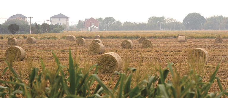 在萧山区,去年秋天首次使用了秸秆搂草机和秸秆打捆机这组“黄金搭档”,约一周时间,就完成了世纪田园约3500亩晚稻秸秆回收。一捆捆“瑞士卷”静静地“躺”在城市中心的“稻田CBD”上,成为一道“丰”景,吸引了大量市民拍照。