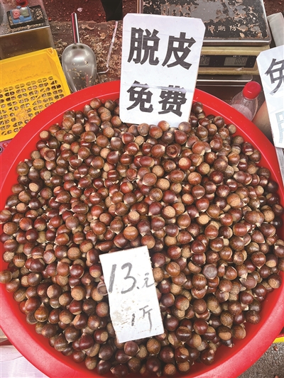 栗子摊打出免费去皮广告 记者 宋赟 摄