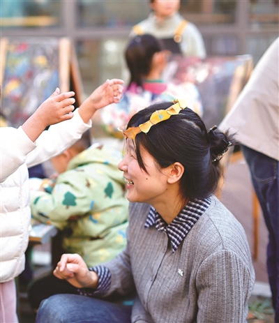 昨天下午,在滨江区钱塘帝景幼儿园(永久河分园),几个小朋友围着冯轶君,欢声笑语不断。