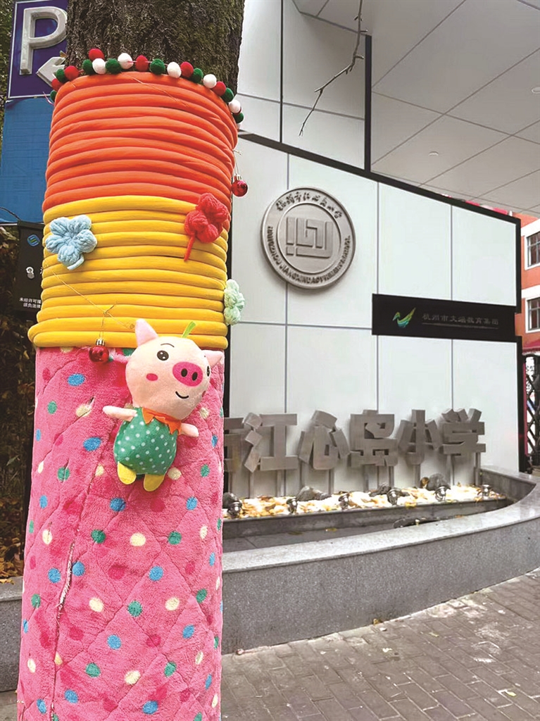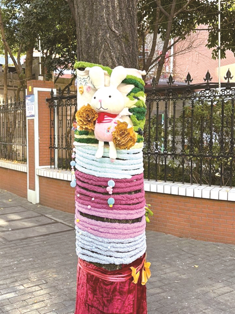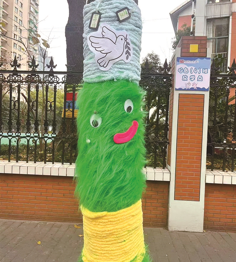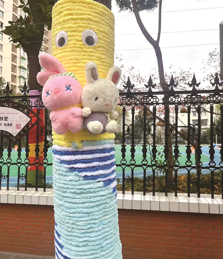 王老师说,“裹树添衣”活动完成后,校内外令人眼睛一亮,很多人来这儿打卡拍照。
