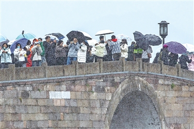 回顾一下杭州的这场“下雪大戏”。前天20点多,临安太子尖、百丈岭等山区率先飘雪。昨天早晨杭州主城区最低气温1.1℃,低温配合充沛的水汽条件,主城区也下起了雪,早晨6点多,西湖边开始下一些“雪粒子”,到了8点多,全城飘起雪花。