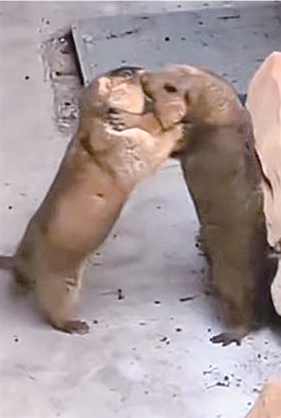 “土拨鼠喜欢‘打架’,可能也是一种亲近的方式,两只土拨鼠爪子握牢,你顶我,我顶你,有时一只爪子相握,另一只爪子去抓对方的脖子,它们喜欢打洞,外面预留的泥土地上都是洞,它们喜欢躲在洞里。