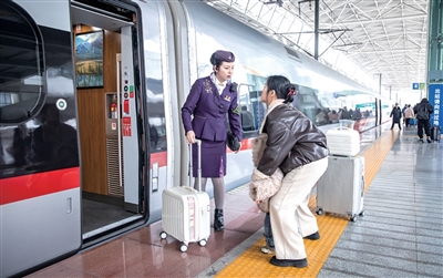 35岁的钱佳是杭州客运段高铁一车队“西子号”乘务组列车长,这是她的第15个春运。