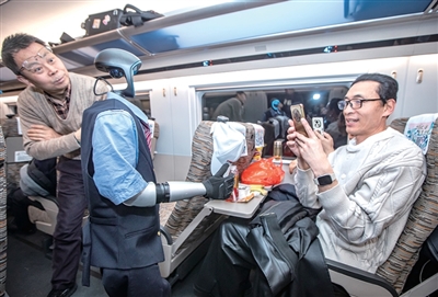 今年春运,“西子号”还迎来了一位特殊的“编外乘务员”——智能服务机器人“福兴”。它身着铁路制服,一亮相就吸引了全车厢的目光。