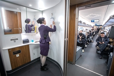 春运开始前,钱佳就已经把4岁的女儿送回老家,还提前和家人吃了顿年夜饭。这个春节的大多数时间,钱佳都会在飞驰的列车上服务,丈夫则在车站的岗位上值守。