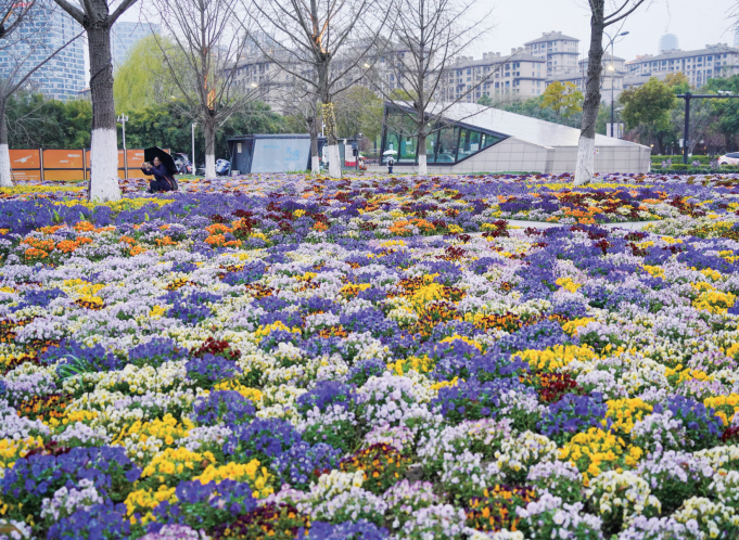 这几天,在杭州地铁5号线良睦路站C口,多彩的三色堇正热烈绽放,紫白黄红交织,宛如打翻的莫奈调色盘,美丽动人。这片出站即遇的花海,仿佛一份惊喜彩蛋,引得市民游客频频驻足观赏,邂逅春日浪漫。