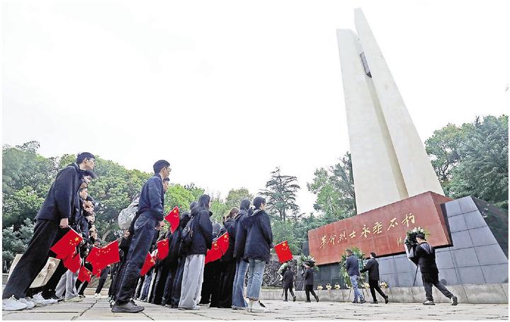 杭州日报讯 3月31日,清明将至,社会各界纷纷组团来到位于云居山上的浙江革命烈士纪念馆(碑),怀着崇敬的心情祭奠先烈,缅怀他们的丰功伟绩,以敬献花篮、重温入党誓词、参观烈士纪念馆等形式,开展“追寻·2026·清明祭英烈”活动,传承红色基因、赓续红色血脉。
