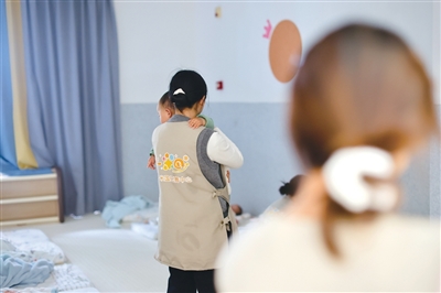 托育员在哄宝宝