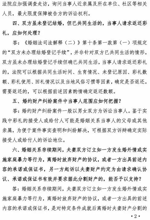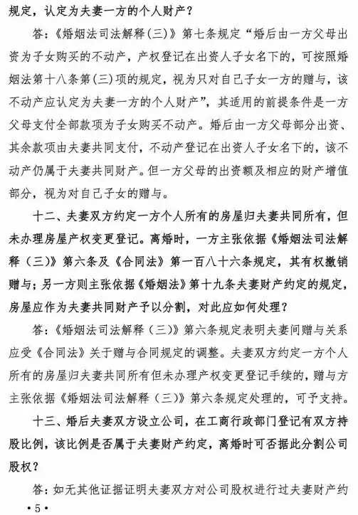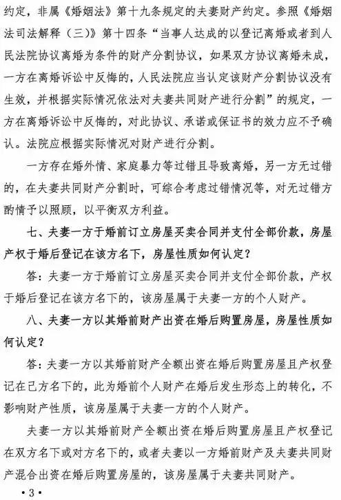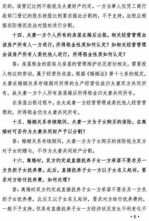 还记得之前有部很火爆的电视剧《离婚律师》吗? 剧中,吴秀波扮演的律师池海东为了照顾前妻焦艳艳,谎称自己“出轨”。 在法庭上,焦艳艳的代理律师利用他们之间的净身出户协议,让池海东被判“净身出户”,一夜之间失去了所有财产。 事实上,这样的协议是不具备法律效应的。 最近,浙江省高级人民法院民一庭就针对近年来审理婚姻家庭案件遇到的一些新困惑,结合现有法律法规和司法解释,作了参考性的解答,便于统一裁判尺度。 已经同居但没结婚 彩礼要不要退? 问题:没结婚彩礼要退还,这是相关司法解释的规定。但已经同居闹分手情形下要不要退彩礼? 解答:此前相关规定中提到退彩礼的情形之一是“双方未办理结婚登记手续”,但这个并非针对双方已共同生活的情形。 如果双方已经同居但没登记,法院可以根据共同生活时间、生育情况、未登记原因、彩礼数额、彩礼使用、回礼情况以及当地风俗习惯等因素,综合考量要不要退、退多少,而不是“一棒子打死”说要退。 简单地说,得看情况! 净身出户协议有效吗? 问题:离婚案件中,其中一方拿出净身出户协议的情况现在越来越多,理由是对方既然曾经承诺过某种情况下会放弃财产,所以离婚时就该一分钱都不给对方。 解答:此类承诺或者保证书,是对特定条件成就后离婚时夫妻财产分割的约定,不属于《婚姻法》第十九条规定的夫妻财产约定。 参照离婚没成(双方已签离婚协议但未到民政局或法院协议离婚成功的)、此前拟写的离婚协议也无效的相关规定,一方在离婚诉讼中对此类净身出户承诺、保证书中财产分割反悔的,法院对该协议、承诺或保证书的效力不予确认。 不过,法院仍然会根据实际情况,考虑是否存在婚外情、家庭暴力等,来对无过错方酌情予以照顾。 简单地说,协议无效! 婚后拿婚前存款买房,算谁的? 问题:婚前个人财产算个人的,这个大家都懂。但结婚后其中一方拿自己婚前的存款买了房,这房子又算谁的? 解答:拿自己婚前财产全额出资在婚后买房并且登记在自己名下的,这是婚前个人财产在婚后发生形态上的转化,不影响财产性质,该房屋属于其个人财产。 如果登记在双方名下或者对方名下,或者双方都以婚前个人财产婚后混合出资的,就属于夫妻共同财产。 简单地说,买前先想清楚! 共同按揭还款部分到底怎么分? 问题:婚前一方按揭购买的房子,婚后按揭还款部分也算是夫妻共同财产,但这部分钱怎么算?有时还涉及增值。 解答:补偿数额可按以下公式计算:[婚后还贷本息总额÷(购买时房价+应还贷款利息总额)]×离婚时房价÷2。 如在个案中,计算所得补偿数额明显低于婚后还贷本息总额半数的,应在上述计算方式的基础上,根据照顾子女和女方利益的原则,结合案件实际合理确定补偿数额。 简单地说,法律不会让你吃亏! 孩子不是自己亲生的 女方该不该赔钱? 问题:部分离婚案件中,经亲子鉴定确认,男方与夫妻所育孩子无亲子关系,男方有权要求女方返还抚养费吗? 解答:原则上男方对非亲生子女无法定抚养义务,所以一般可予支持。如果男方不能举证花了多少抚养费,可参照离婚案件中子女抚养费标准来酌情处理。 简单地说,法律不会让你丢了脸又丢钱,所以,得赔! 以下是19个最新婚姻纠纷的解答 |