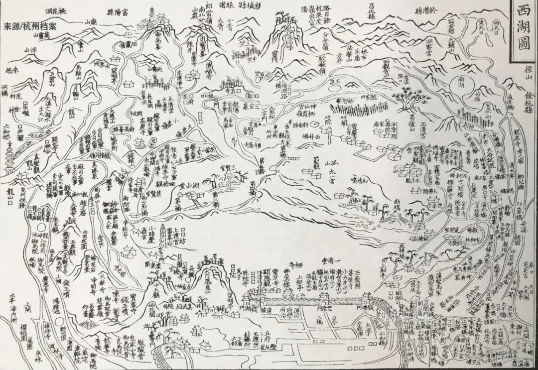 西湖图南宋咸淳四年(1268)《临安志》附图,选自清同治六年(1867)补刊本