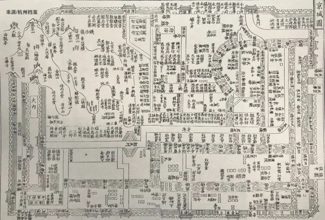 古代,杭州曾有过许多地图,但由于图比文字更难留存,所以流传至今的已经不多。南宋咸淳《临安志》中留存下来的《皇城图》《京城图》13幅图,是流传至今最早的杭州地图。