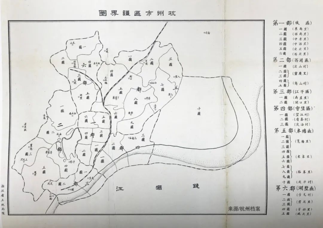 抗战胜利的1945年9月,杭州市重新划区,分为上城区、中城区、下城区、西湖区、江干区、艮山区、笕桥区、拱墅区共八个区,下辖174保、3907甲。