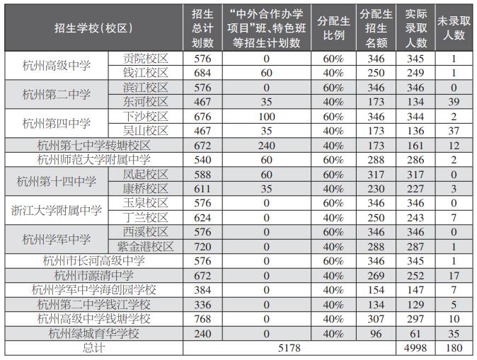 与此同时,还有几所学校淘汰的人较多,比如杭州绿城育华学校名额分配生计划招收96人,实际录取61人,淘汰35人;杭州第二中学东河校区名额分配生计划招收173人,实际录取134人,淘汰39人;杭州第四中学吴山校区名额分配生计划招收173人,实际录取136人,淘汰37人。