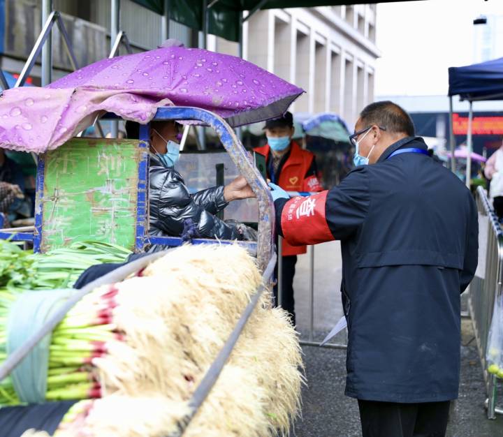 属地良渚街道办事处副主任沈一斌介绍,3月30日接到通知后,根据余杭区指挥部决定,对该市场内人员落实分类管理措施;同时,区疾控中心进行的环境采样,结果全部为阴性,对市场内滞留车辆经过再次检查确认以后予以放行,对于市场的临时管控做到只出不进。