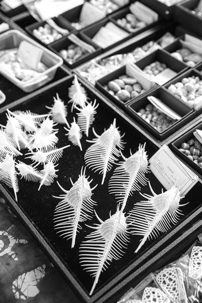 现场,还有国外进口的蝴蝶标本、各种海螺标本,甚至还有皮皮虾标本等。