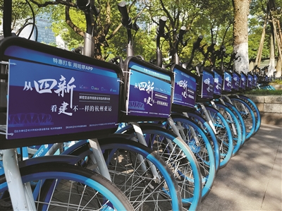 共享单车车身宣传《从四“新”看“建”不一样的杭州亚运》展览