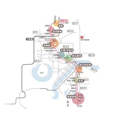 杭州地铁四期规划中的部分线路陆续开建,南北向贯穿杭州城区的地铁15号线相关工程也在推进中。