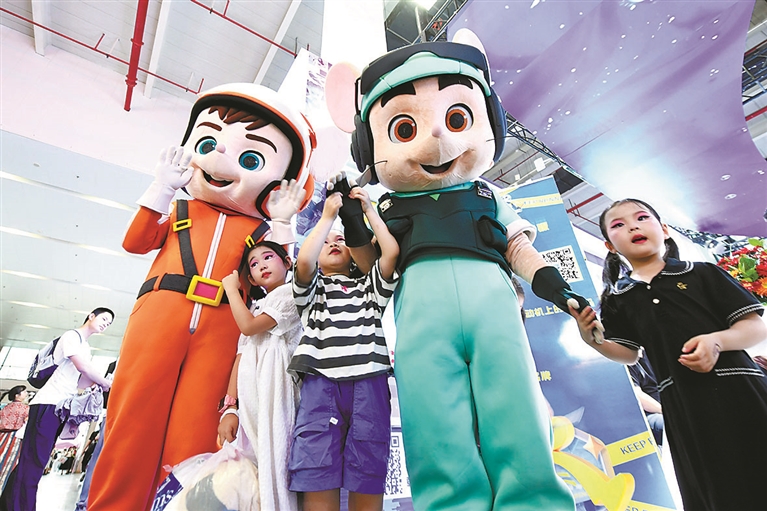 在第十九届中国国际动漫节产业博览会上,孩子们在和动漫人偶互动(资料图)。记者 李忠 摄