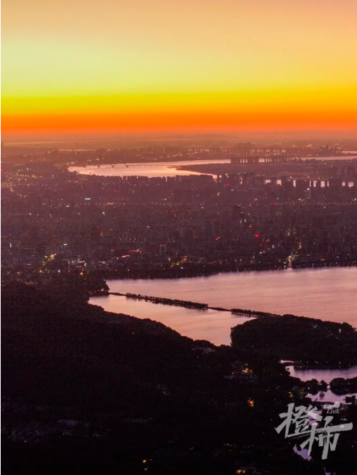 在纳福云台,看到日出前,城市的每一面,都是不同的颜色。也能看到西湖、城市、高楼、西溪湿地、未来科技城……还没有醒来的模样。