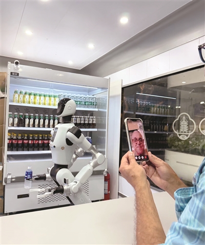 余师傅也买了一瓶怡宝矿泉水,他在义乌一家工地干小工,应一位杭州老板邀请来看看工作,忙完逛西湖,走得满身是汗,扫码买了瓶水,发现递水的是机器人。“太先进了,感觉很新鲜。”
