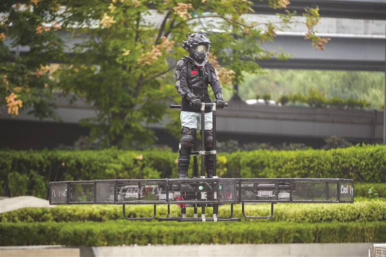 清晨的杭州,城市主干道上,早高峰的车流已经开始排起长龙。就在这时,几个身影从车流上方掠过——他们脚下的“空中滑板车”在离地约10米的低空稳稳飞行,在城市上空穿梭自如……