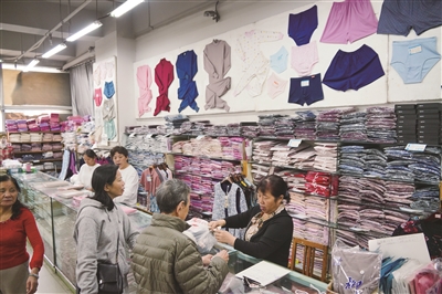 这两天,随着气温骤降,杭州中山中路上的百年老店豫丰祥,丝绵生意又火了。店里卖得比较俏的是棉毛衫、丝绵壳和丝绵袄。豫丰祥的丝绵壳,成人款每件251元到303元,一天能卖二三十件,制作周期大约为一周。新款的薄型丝绵袄,每件298元到398元,一天能卖十多件。棉毛衫是每件51元到54元,一天可卖四十多件。老店员沈国女说,很多老杭州都认准豫丰祥的品质,有的一次性买回去五六件,还有特地从西安、武汉赶来的顾客。这是昨天店员在豫丰祥接待顾客。