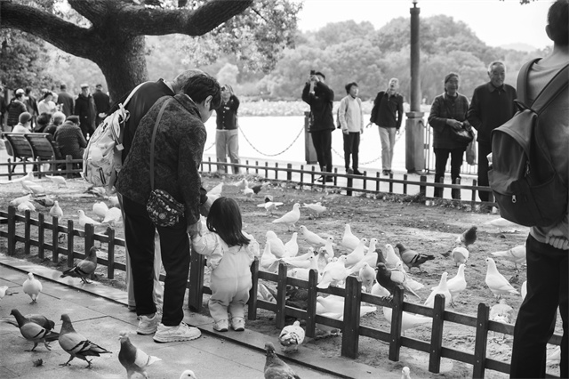 昨天早上,杭州气温低至14.2℃,创下半年以来新低,游客穿着秋装在西湖边游玩。 摄影 商报记者 项凯