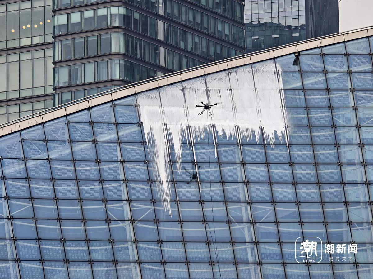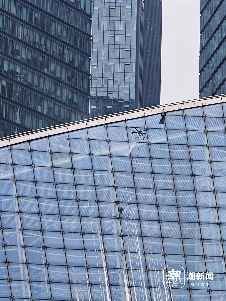 “相较于传统的蜘蛛人,用无人机清洗外立面,更安全也更高效。”陈笑笑举例,杭州大剧院超1000平方米的外立面,需要至少4个蜘蛛人,花上1天的时间,而两台无人机只需要半天,人工也仅需两人。